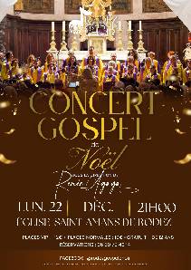 Rodez Gospel Choir et Love & Praise vous emmènent en voyage au coeur du gospel, de ses racines negro spirituals au gospel moderne, message d'espoir et de réjouissance à quelques heures de la nativité !